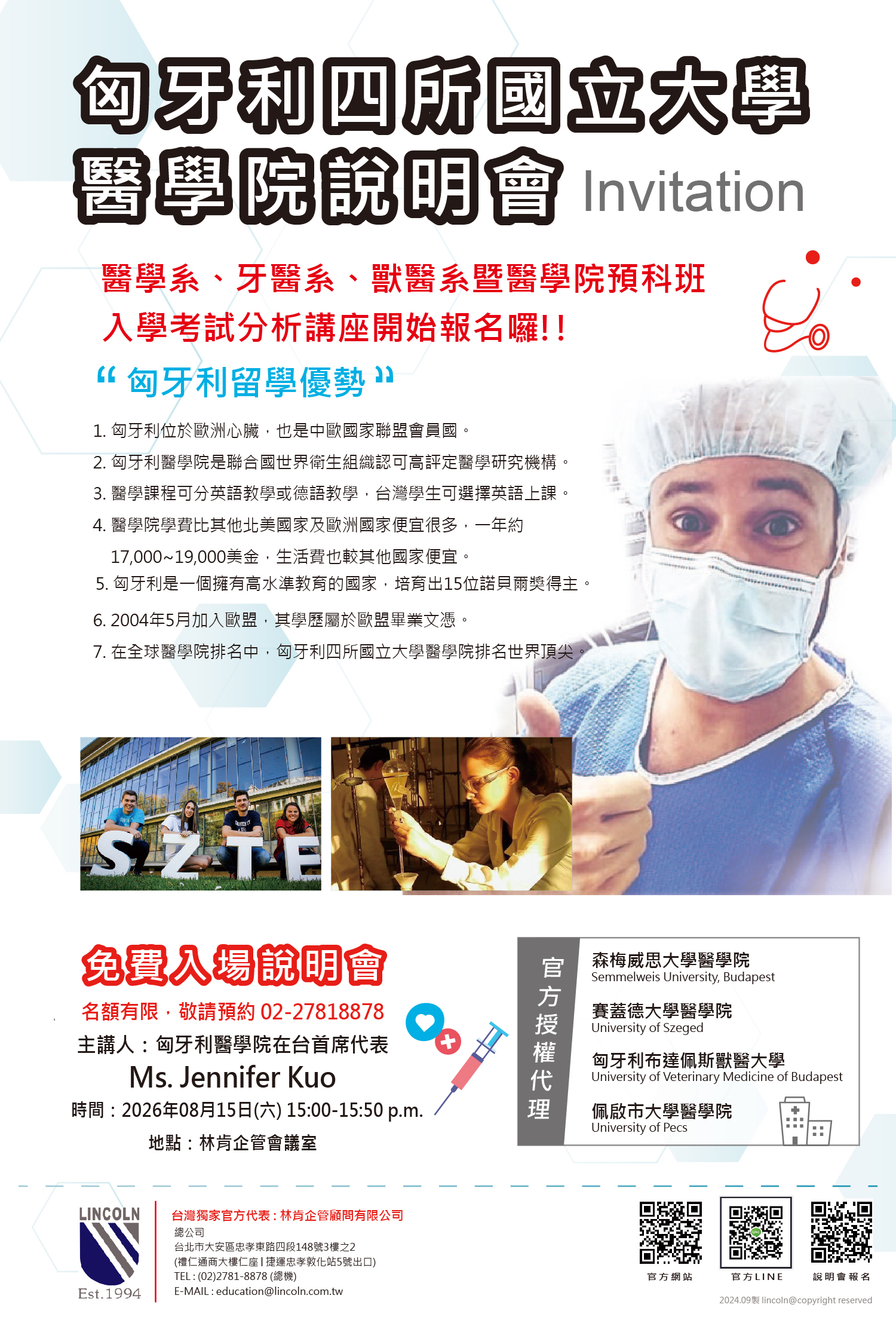 2026.08.15匈牙利國立大學醫學院暨動物學院說明會!!