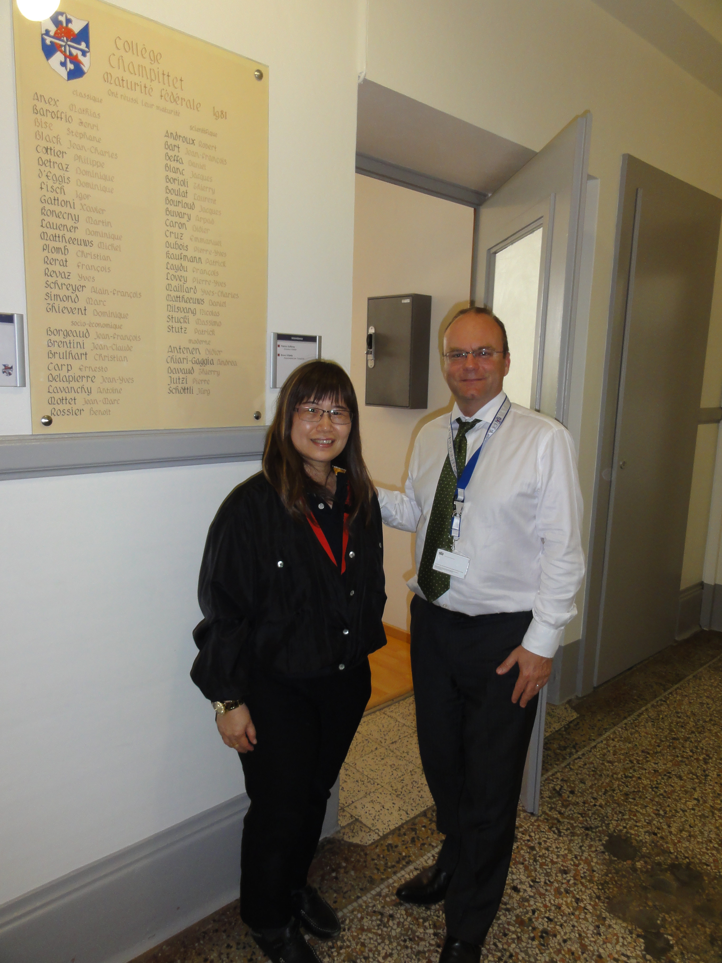 林肯企管執行長Michelle拜訪瑞士Suval-Montreux高中與校長合影